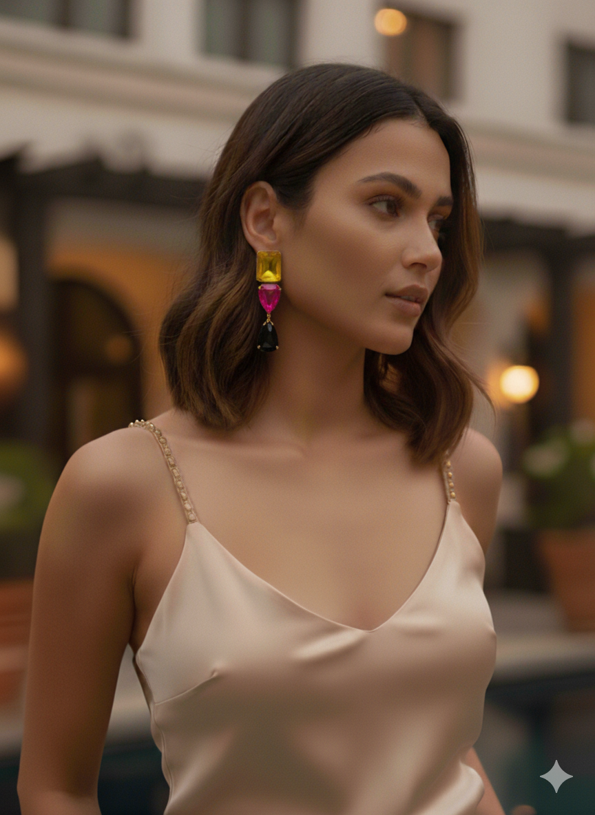 A regal symphony of ruby, sapphire, and emerald tones — blending modern geometry with the timeless opulence of royal heritage.
