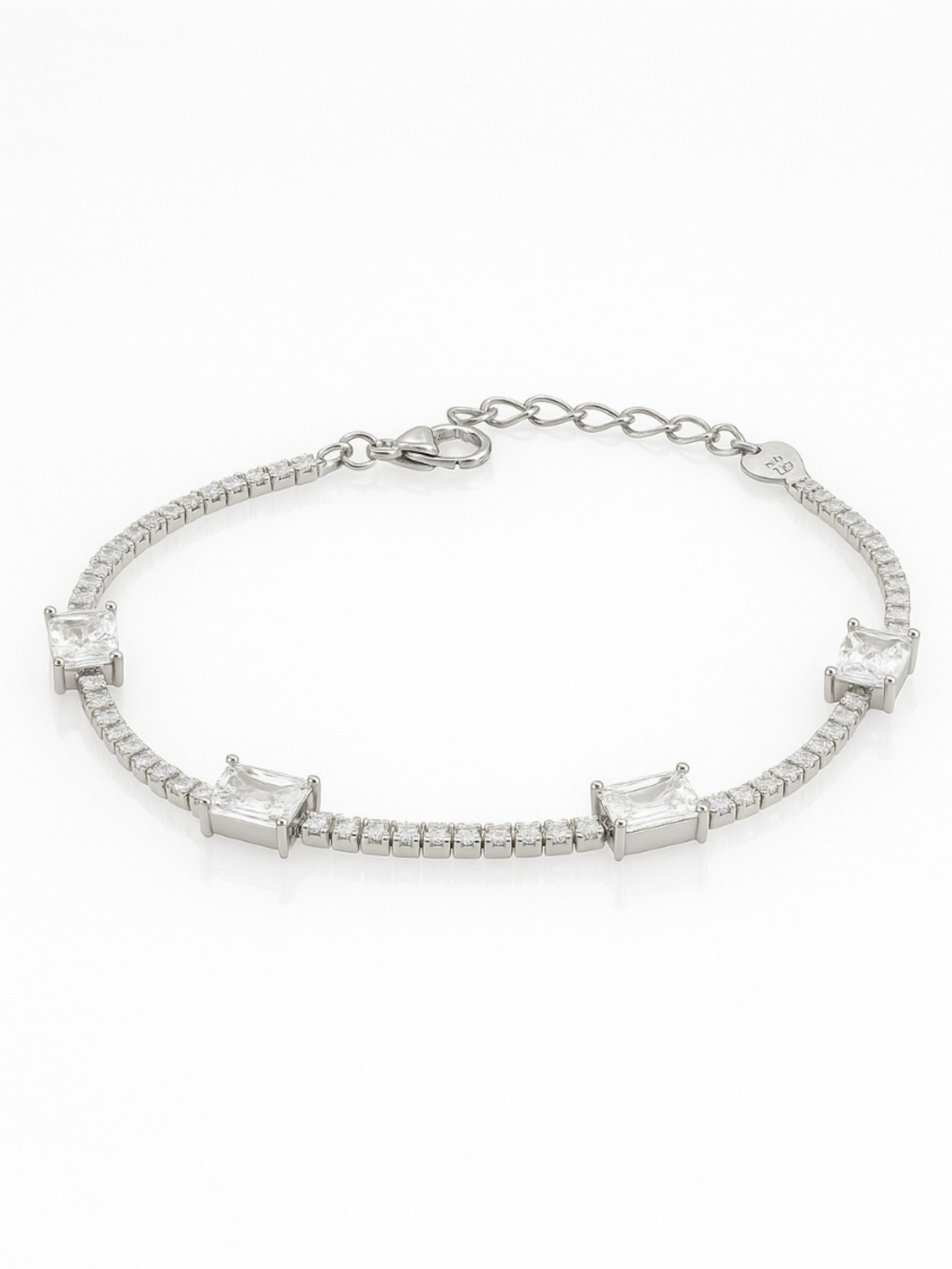 A luminous statement of grace — four Swarovski princess-cut stones shine on a 925 silver chain, symbolising timeless brilliance.