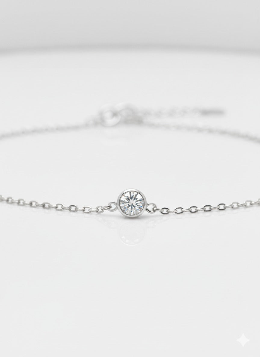 An elegant 925 silver bracelet featuring a single Swarovski solitaire that captures the light with pure, radiant brilliance.
