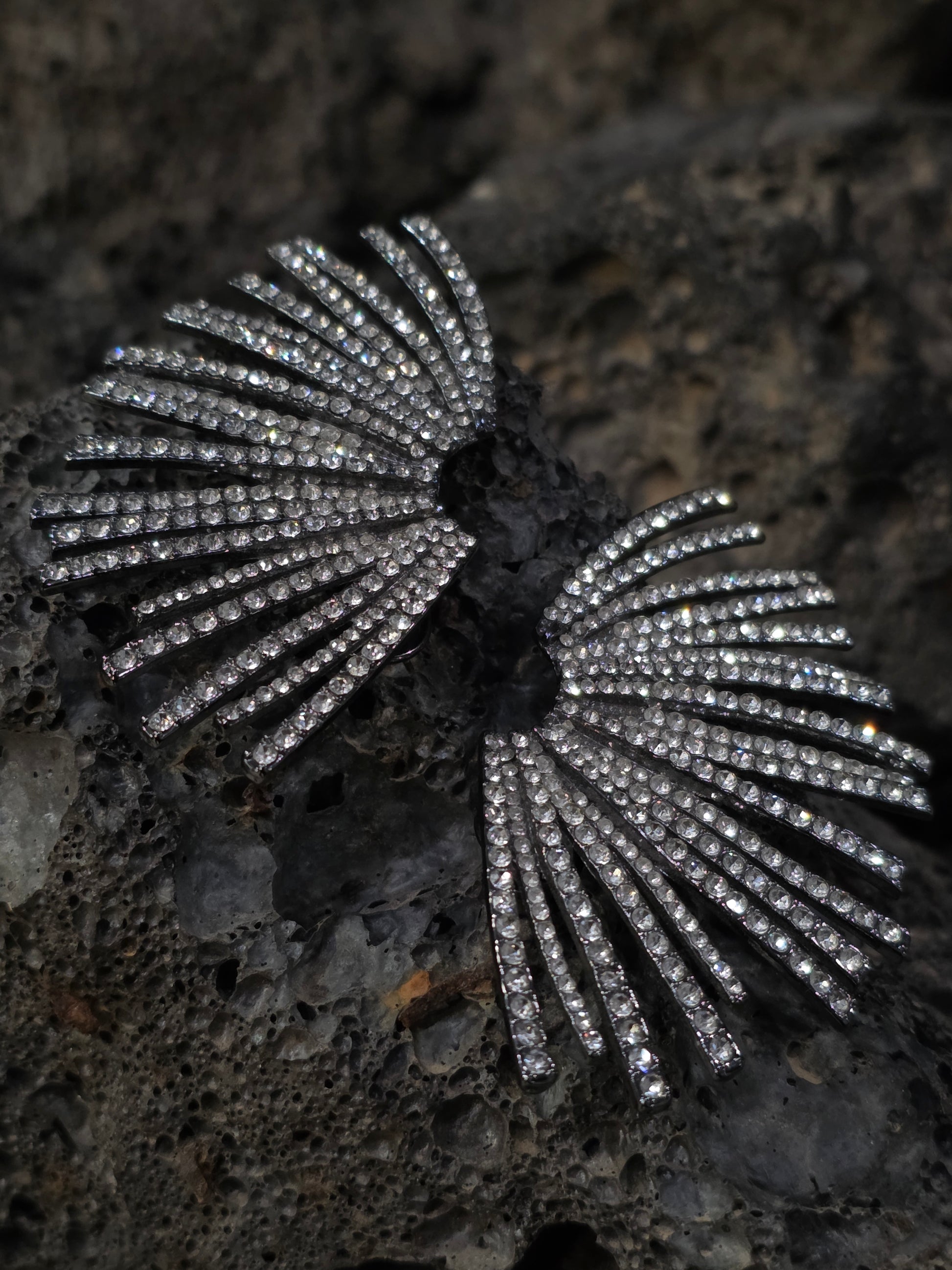 Radiant starburst earrings with sculptural metallic rays and shimmering stones, capturing cosmic light and bold elegance.