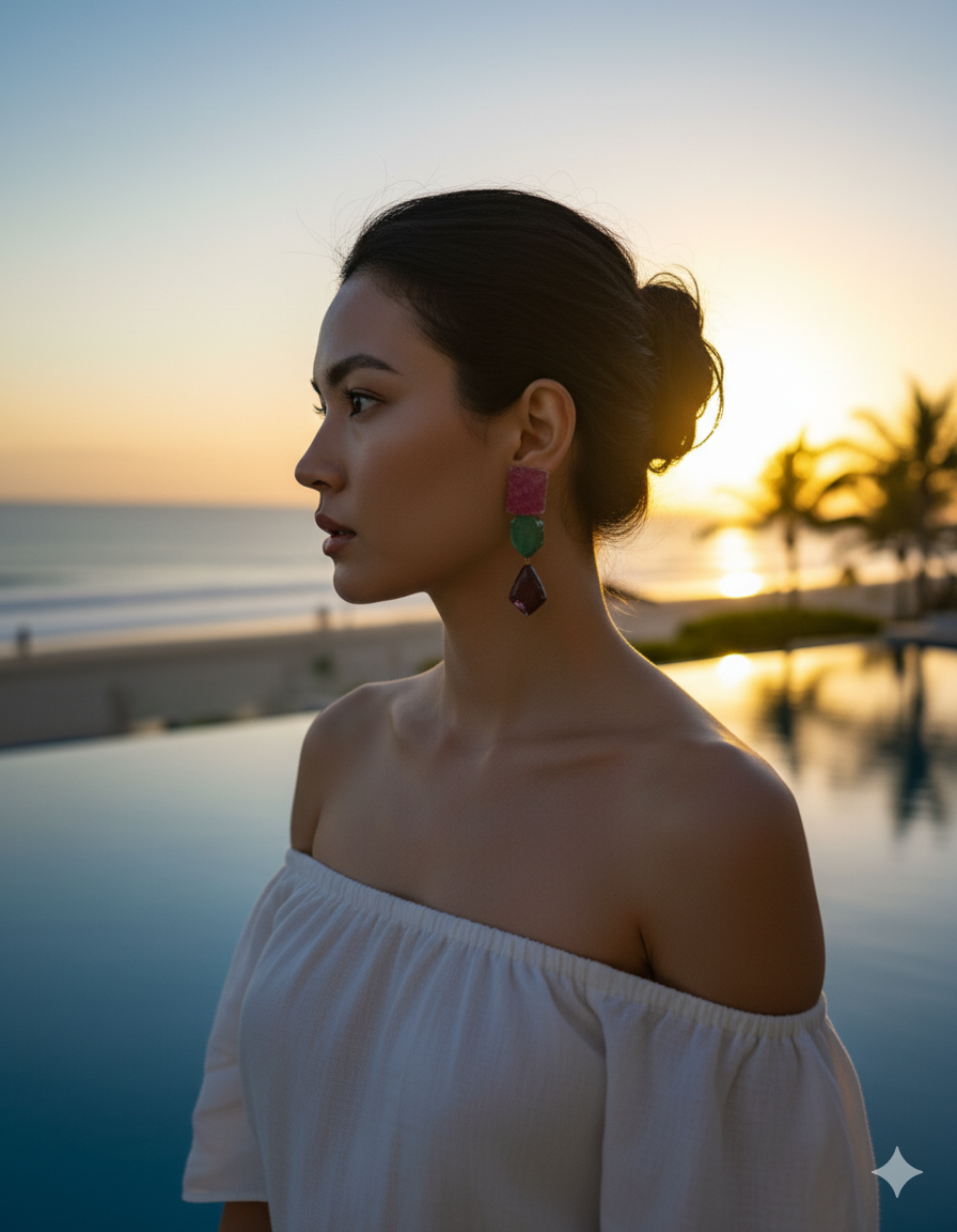 A regal trio of ruby, emerald, and amethyst tones — celebrating divine symmetry and the opulence of celestial-era craftsmanship.